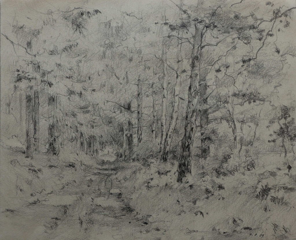 r. u. dat. in Blei („4.8.69“), verso dat. u. bez. („Waldweg bei Arnoldsgrün“) nicht sig.