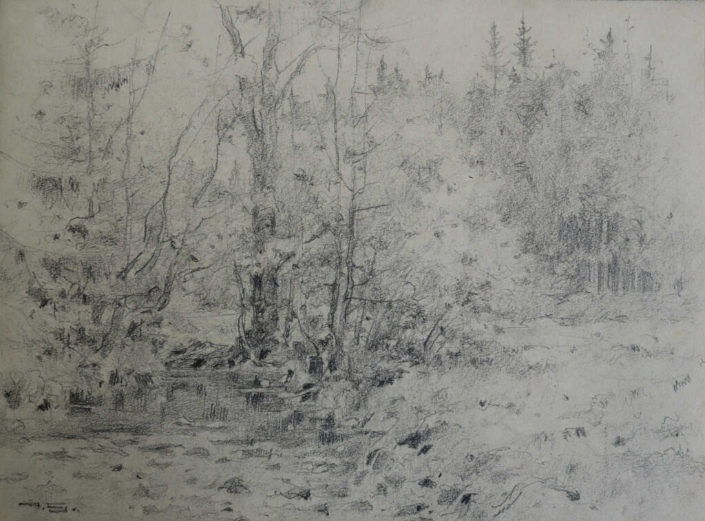 l. u. sig., r. u. dat., verso bez. u. dat. in Blei („M.S., 13.5.71, Der Görnitzbach bei Arnoldsgrün, Skizze“)